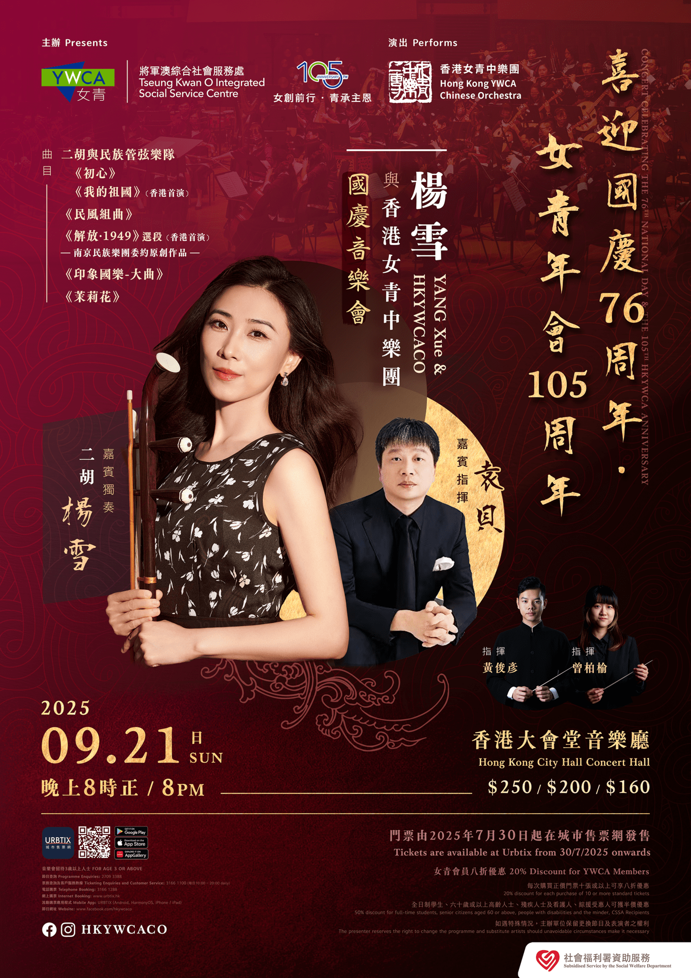 【音樂】喜迎國(guó)慶76周年.女青年會(huì)105周年:《楊雪與香港女青中樂團(tuán)》國(guó)慶音樂會(huì)