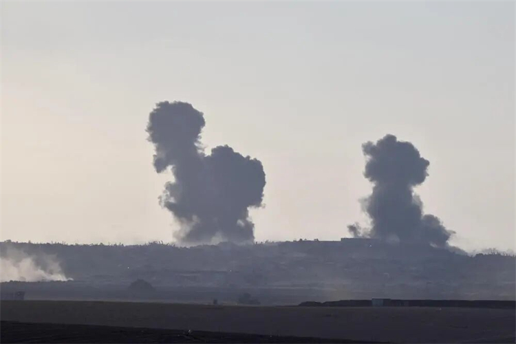 9月16日從加沙邊境以色列一側(cè)拍攝的加沙地帶遭襲後升起濃煙。