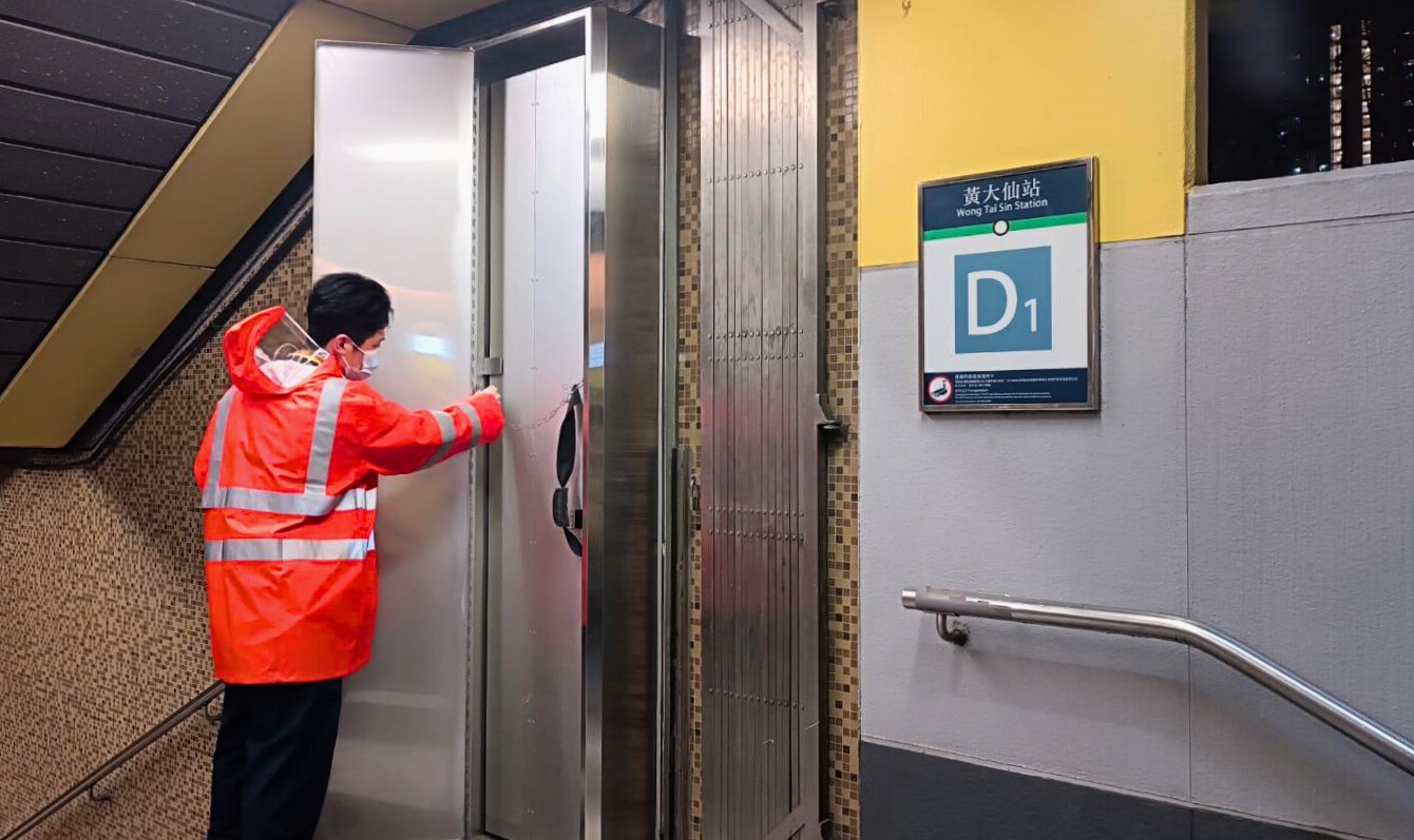 港鐵站及鐵路設(shè)施人員檢查防洪設(shè)備及排水系統(tǒng)。