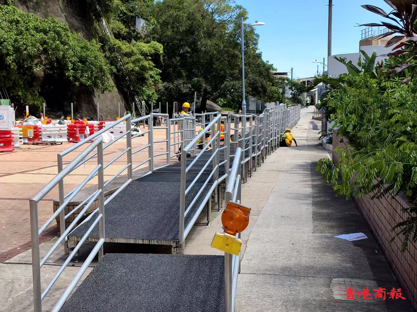 現(xiàn)場(chǎng)建設(shè)橋樑供居民水浸時(shí)橫過。記者 馮瀚文攝