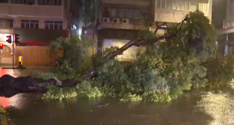 截至早上9時,政府1823電話中心、消防處和康樂及文化事務署分別收到55宗、157宗和1宗塌樹報告。凌晨約4時,尖沙咀柯士甸道與漆咸道南交界行人路旁一棵逾5米高的大樹連根拔起,橫亙路中,消防員接報到場,用電鋸將樹幹切割並移離,花約半小時處理完。而在黃大仙橫頭磡東道橫頭磡邨對開,有大樹在強風吹襲下倒塌,樹枝橫臥在路旁,樹幹壓中一輛的士,無人受傷。