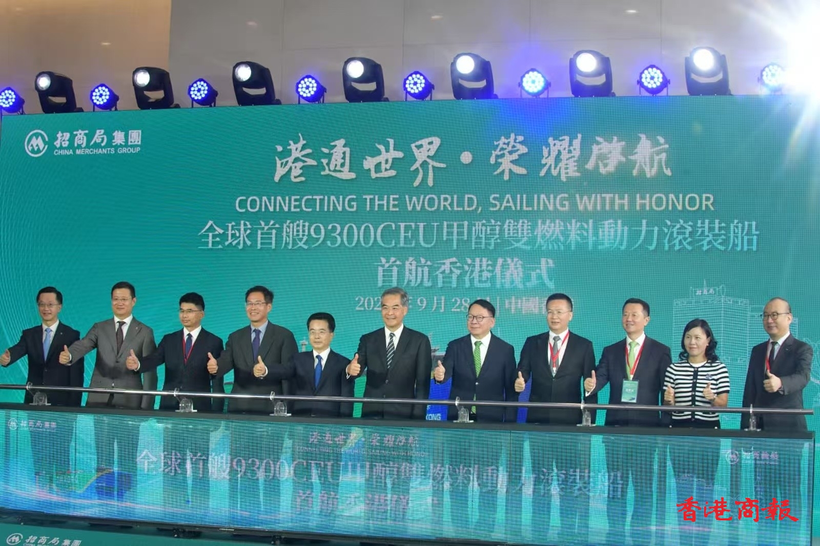 招商輪船:9300CEU甲醇雙燃料動力滾裝船首航香港儀式。圖:崔俊良攝