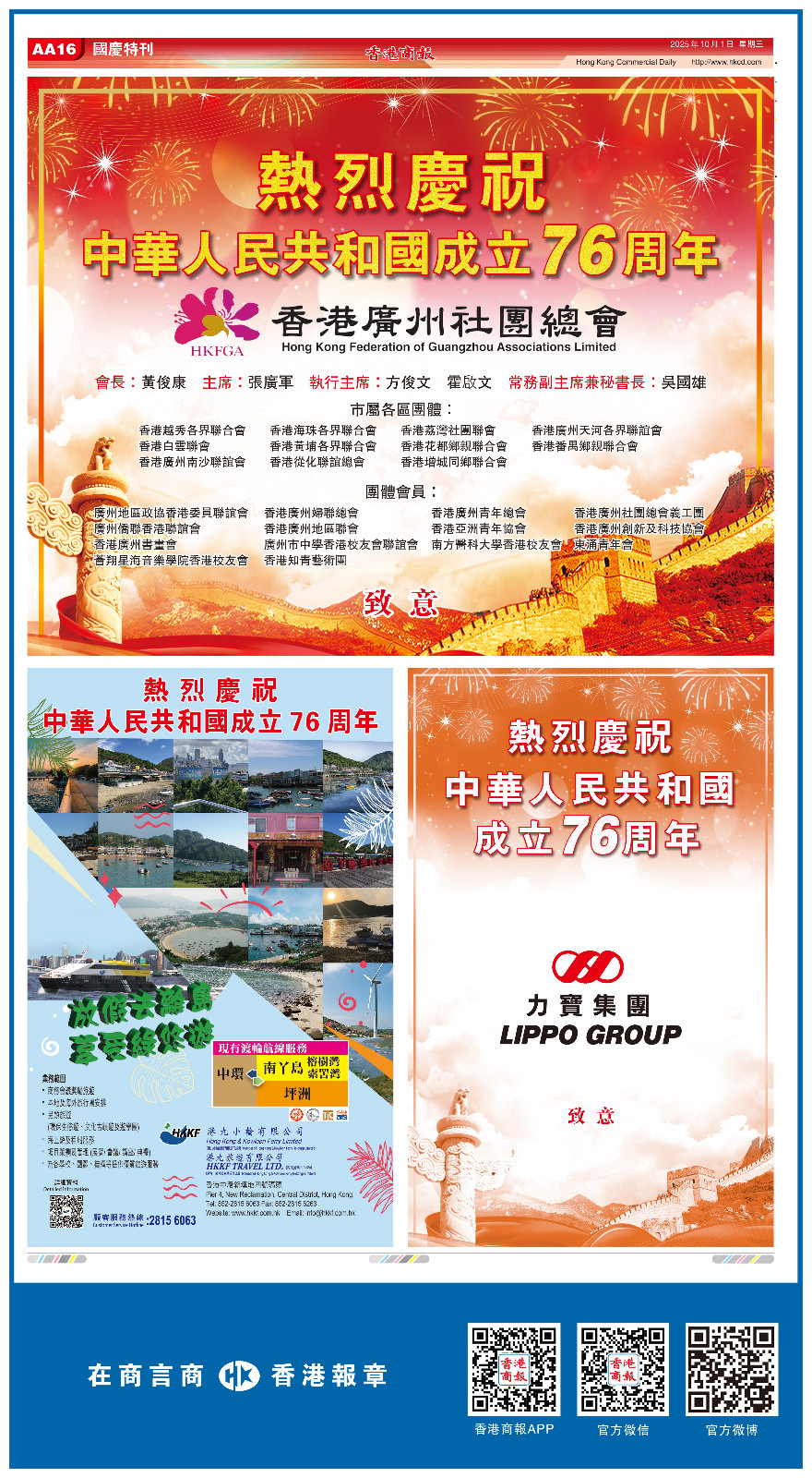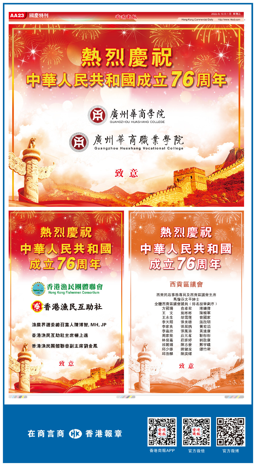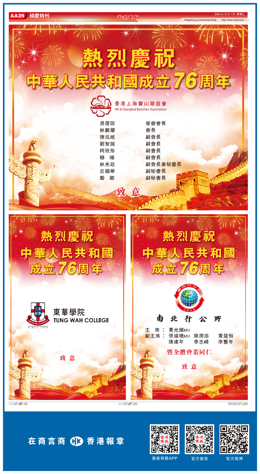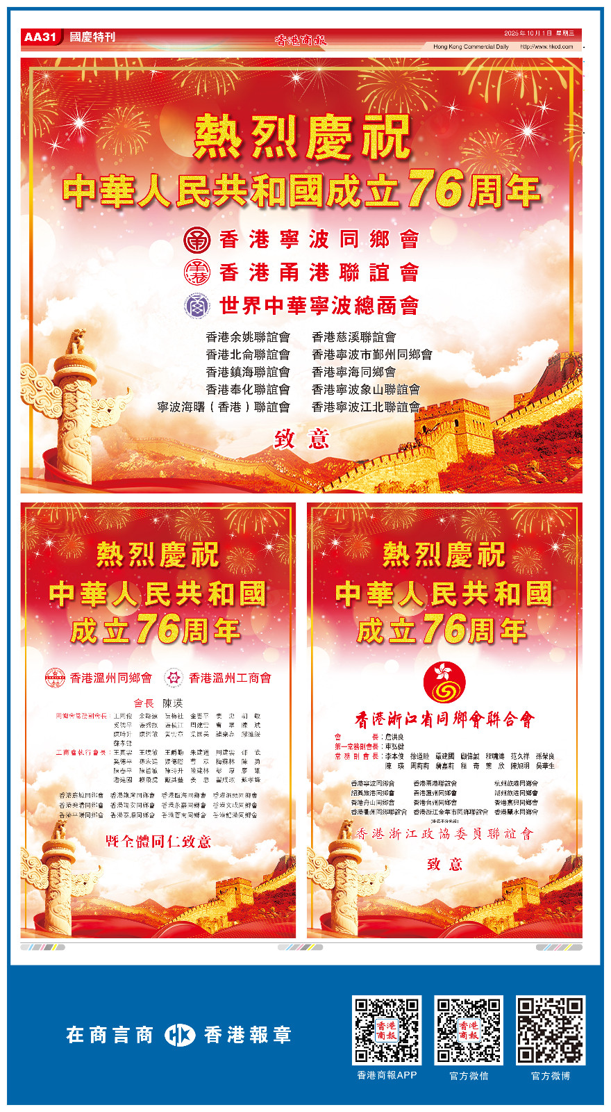 責(zé)任編輯:黃鶯 賀國慶76周年 香港商報(bào)精彩版面來了!