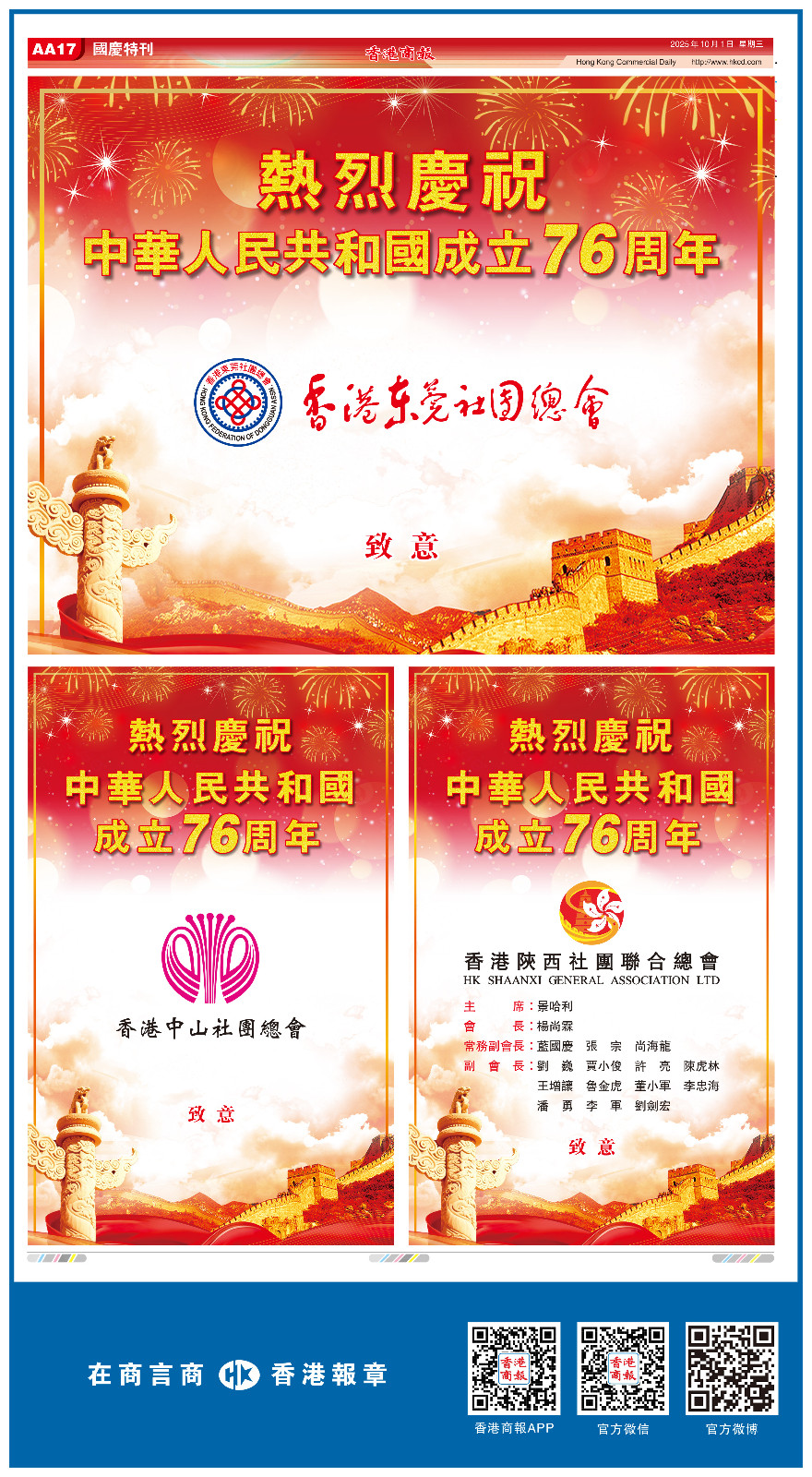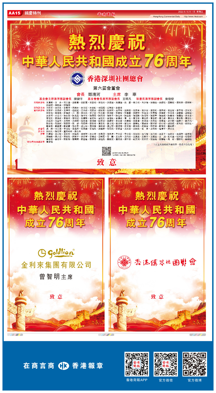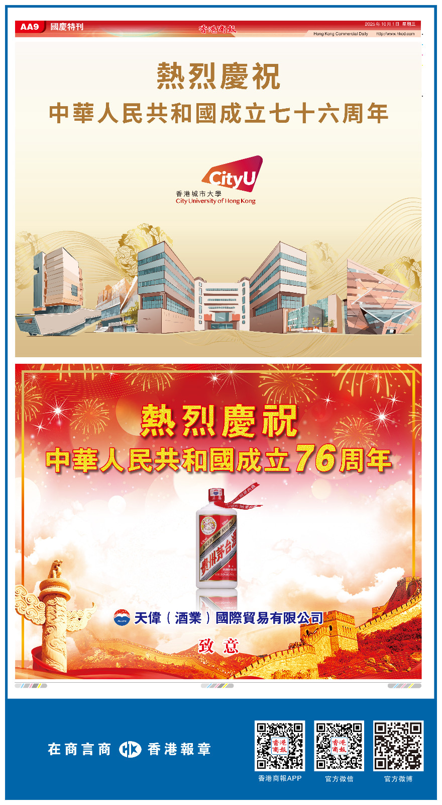 責(zé)任編輯:黃鶯 賀國慶76周年 香港商報(bào)精彩版面來了!