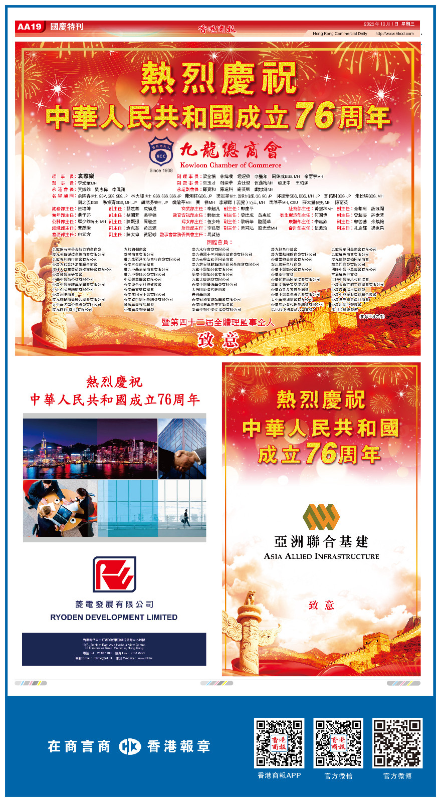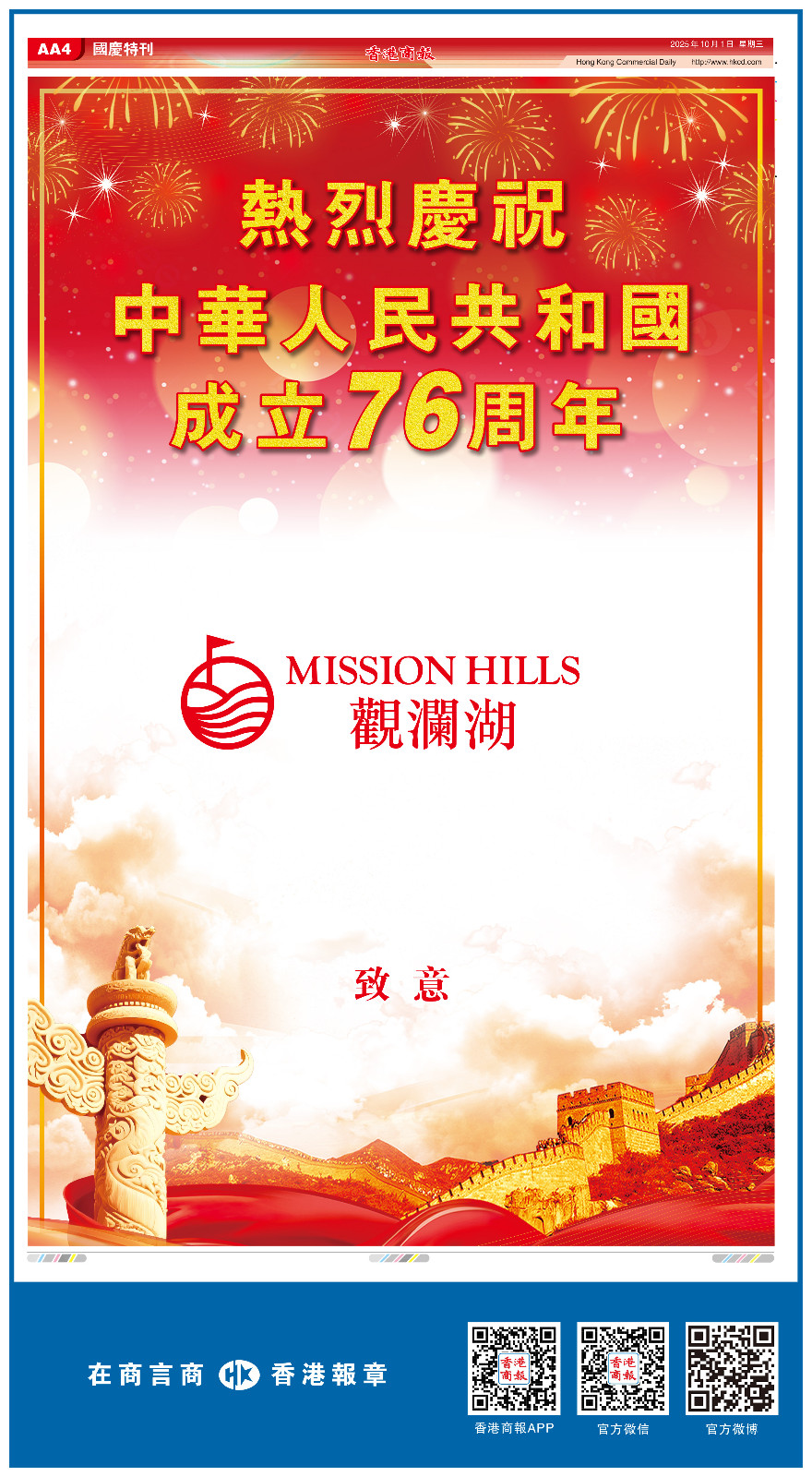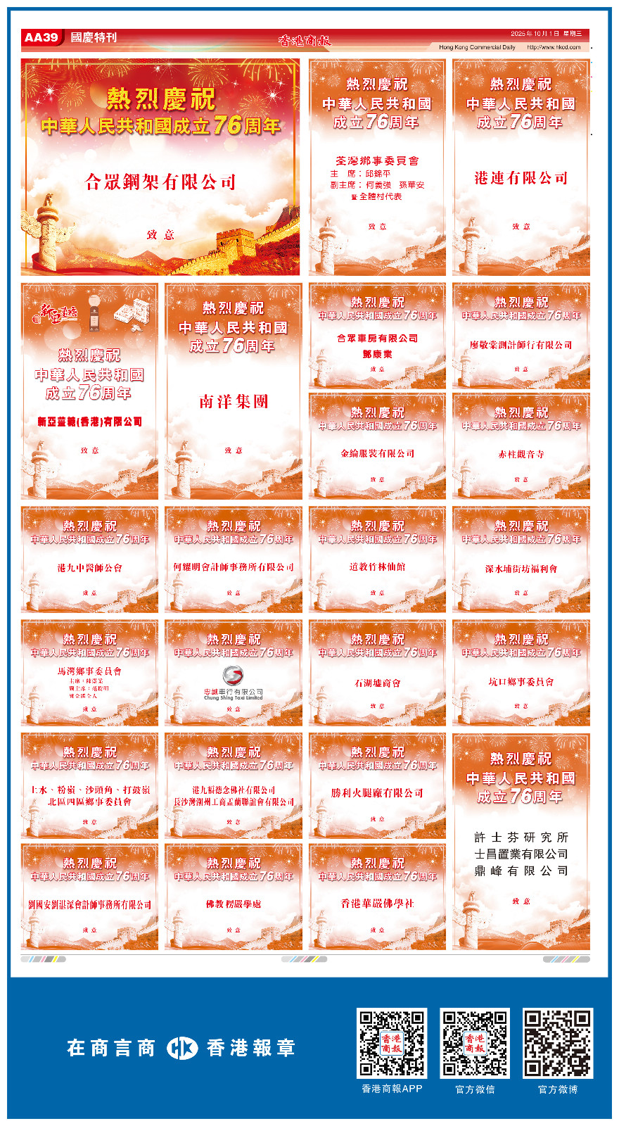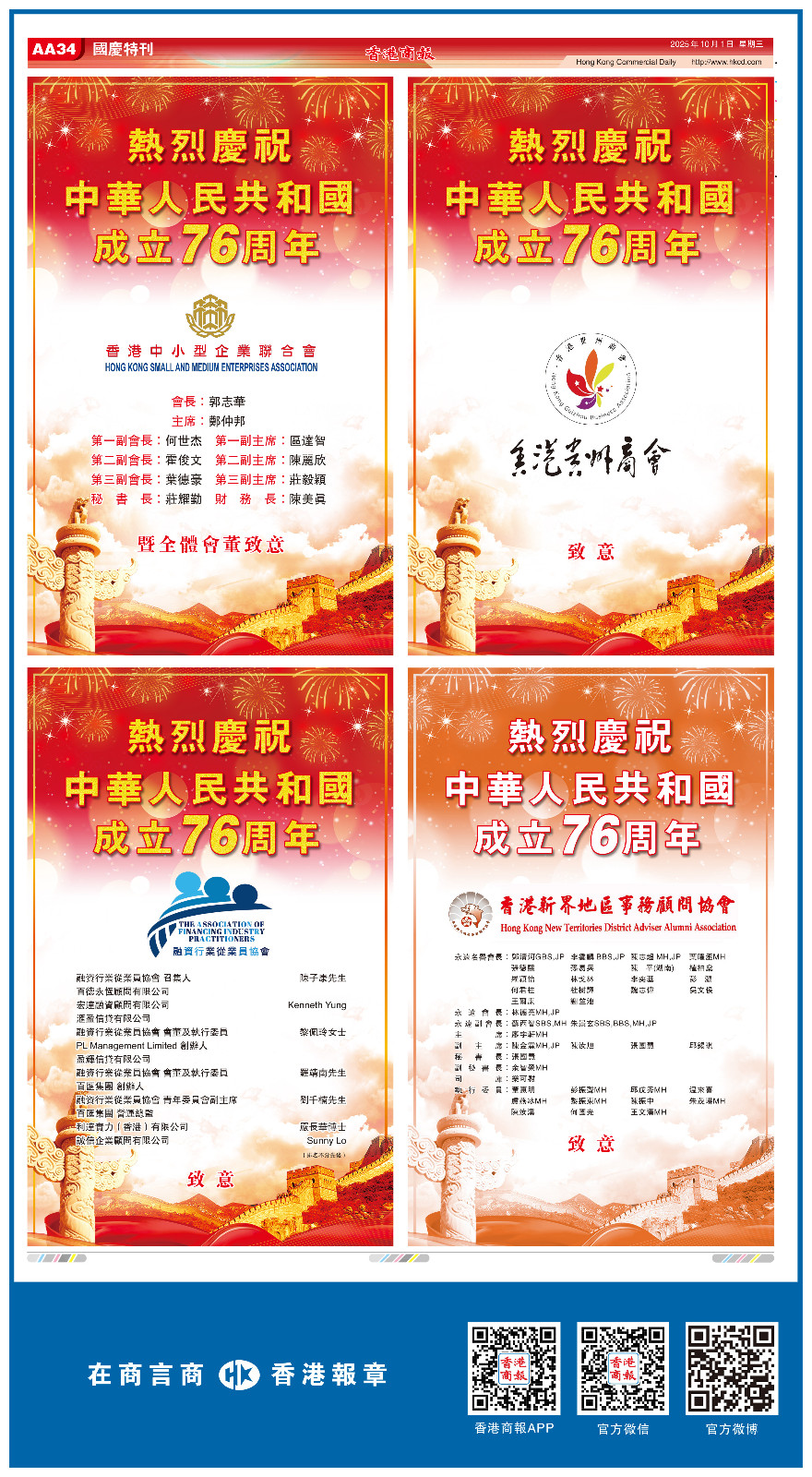 責(zé)任編輯:黃鶯 賀國慶76周年 香港商報(bào)精彩版面來了!
