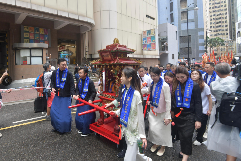 東華三院今日(12日)舉行「文武二帝出巡暨秋祭大典」,吸引大批市民及遊客沿途觀賞,場(chǎng)面熱鬧,充分展現(xiàn)傳統(tǒng)文化在社區(qū)的活力與傳承。民政及青年事務(wù)局局長(zhǎng)麥美娟,東華三院主席何猷啟,中聯(lián)辦協(xié)調(diào)部副部長(zhǎng)陳澤濤、中西區(qū)民政事務(wù)專(zhuān)員鄭建瑩、警務(wù)處中區(qū)指揮官汪威遜等嘉賓主持點(diǎn)睛簪花儀式,近500人的出巡隊(duì)伍由上環(huán)文化廣場(chǎng)出發(fā),經(jīng)摩利臣街、皇后大道中及水坑口街,抵達(dá)荷李活道文武廟。
