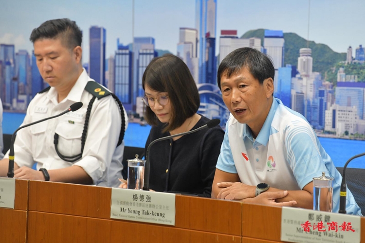 全國運(yùn)動會香港賽區(qū)統(tǒng)籌辦公室主任楊德強(qiáng)(右一)指上月30日已進(jìn)行賽前的綜合演練,演練過程亦都是順利。