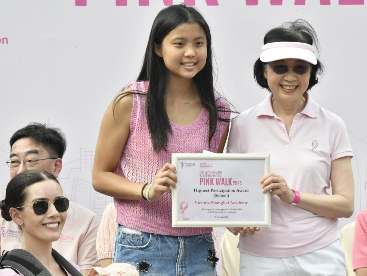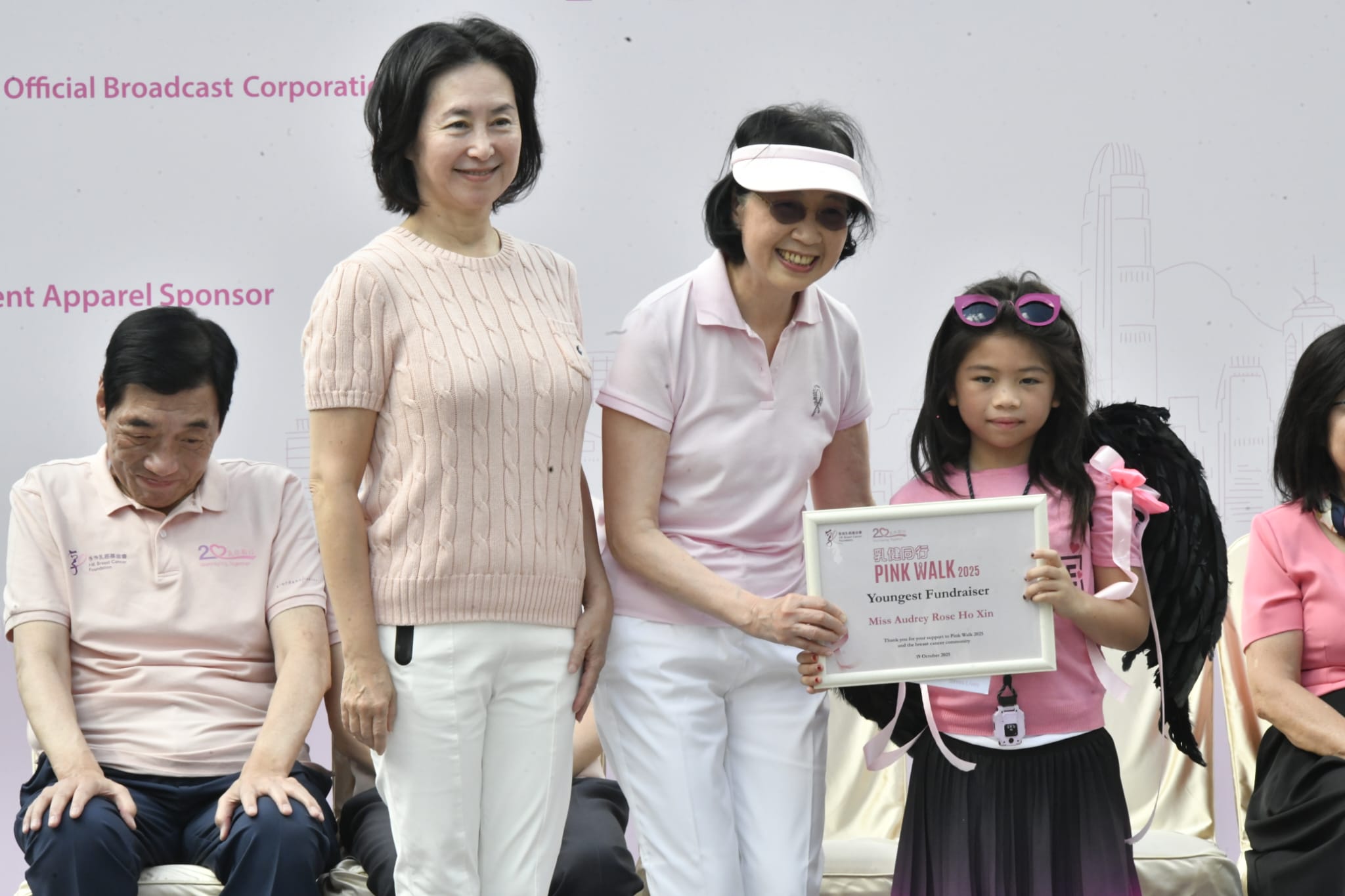 麥美娟、行政長官夫人李林麗嬋、醫(yī)管局主席范鴻齡等出席起步禮。近2000名身穿粉紅色上衣的參加者,從山頂?shù)阑▓@出發(fā),途經(jīng)盧吉道再折返,籌得的善款會用作支援基金會工作。