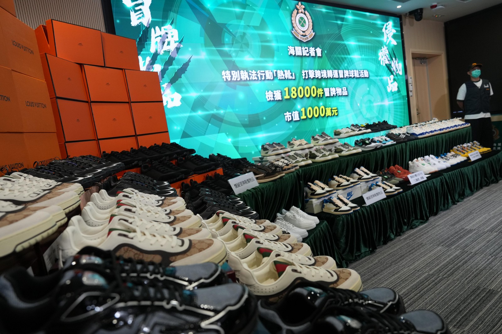 海關(guān)過去兩周展開特別行動(dòng)打擊跨境轉(zhuǎn)運(yùn)冒牌波鞋活動(dòng),檢獲1.8萬件冒牌物品,市值約1000萬元,相信冒牌物品運(yùn)住歐美等地,行動(dòng)中拘捕2名入境貨車司機(jī)。