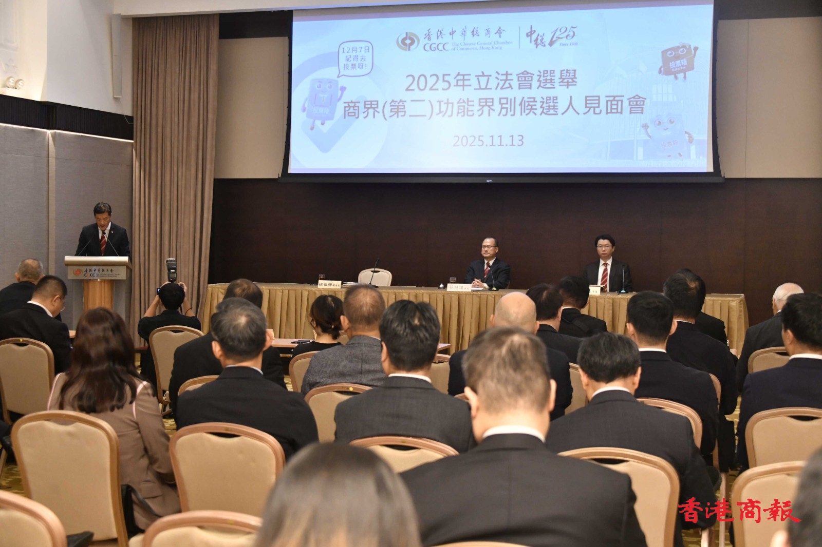 頂圖:香港中華總商會(huì)今日舉辦商界(第二)功能界別候選人見面會(huì)。記者蔡啟文攝