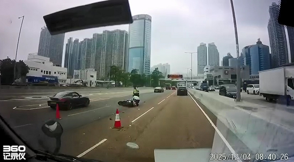 西九龍公路發(fā)生交通意外,今日(4日)早上8時許,兩名鐵騎士駕電單車往葵涌方向駛至近奧運港鐵站時,懷疑失控翻車,兩人倒地受傷,警方接報到場封閉一段中線,正調查意外原因。受意外影響,西九龍公路往葵涌方向受阻近一小時。(記者 區(qū)天海)